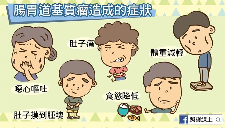 當然,如果腸胃道基質瘤慢慢地長,患者可能會先由肚子痛、肚子摸到腫塊、噁心嘔吐、食慾降低、體重減輕等常見腸胃道症狀。