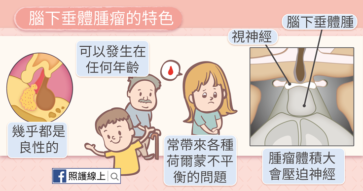 看到這裡,大家可以明白腦下垂體腫瘤會帶來兩大問題,一個是功能上可能造成荷爾蒙的不平衡;另一個則是腫瘤體積造成的神經壓迫。因此,腦下垂體腫瘤不用長到太大,也常不是惡性,但就會影響健康。