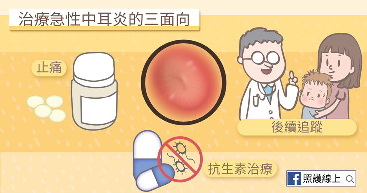 抗生素是治療中耳炎的其中一環,但並不是全部。中耳炎的治療還包括了很重要的「止痛」和「後續追蹤」,追蹤的重點是觀察發燒、耳痛和耳膜的變化是否改善。