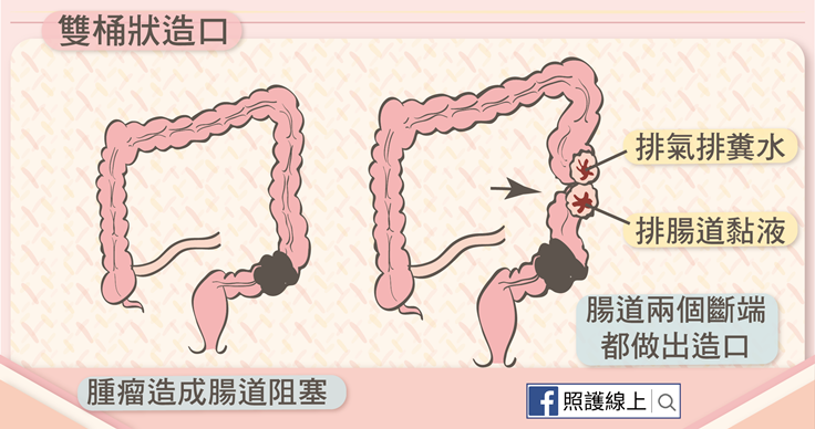 ● 腸道外傷或憩室炎:腸道有外傷或發炎性疾病時,我們可以先做個腸造口,引流糞水至體外,先不經過受傷腸道,讓受傷、發炎的腸道能在較乾淨的狀況下癒合。
