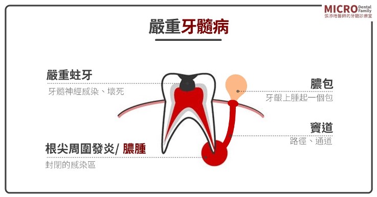 ●雖然牙齒是活的,但牙髓已經有不健康的疾病變化。