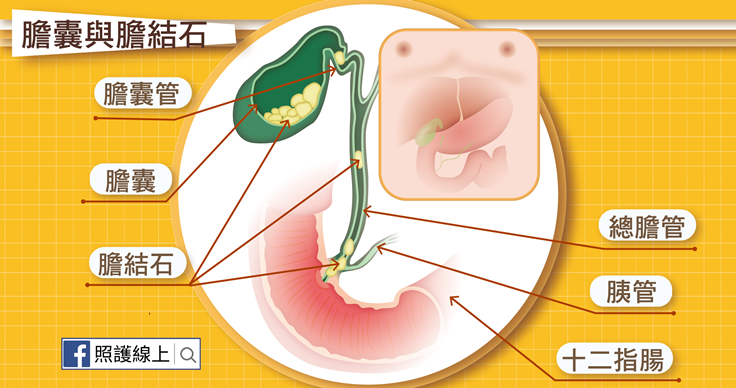 膽結石的盛行率很高,幾乎大家都聽過這個病,患者偶爾會覺得肚子痛,尤其進食後的右上腹痛,或有飯後噁心、嘔吐等症狀,這是因為進食之後,膽囊會收縮,擠壓膽汁進到小腸內幫助消化,若有結石存在,不免引起絞痛痙攣感。