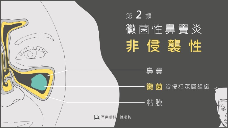 只有上面提到的侵襲性感染需要使用抗黴菌藥物,另一類的黴菌感染,因為黴菌沒有進一步越界往鼻腔黏膜內深入,不會侵犯到全身,所以不需要使用副作用較大的抗黴菌藥物。