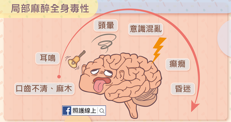 這種嚴重的反應常常是在注射後的一到五分鐘就發生了,被稱為局部麻醉劑全身毒性(Local anesthetic systemic toxicity),會對中樞神經系統、心血管系統、血液等處引發嚴重問題。