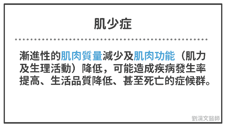 並不是只有肌肉量變少喔!也包含肌力減退或生理表現下降。