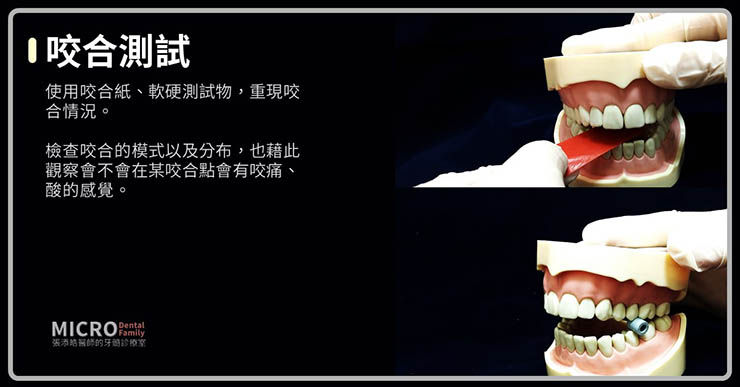 ●檢查咬合的模式以及分布,也藉此觀察會不會在某咬合點會有咬痛、酸的感覺。