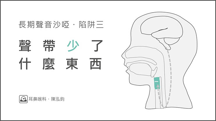 不只聲帶多長東西會讓聲音沙啞,聲帶若缺乏某些結構,嗓音也可能出問題。這裡提出兩個常見的狀況: