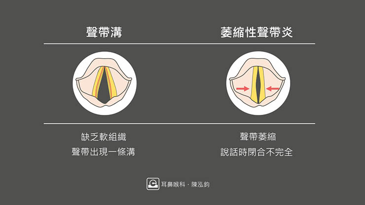 顧名思義,聲帶溝就是聲帶出現一條「溝」,這是因為長期過度使用聲音或聲帶反覆受傷,久而久之造成聲帶內的軟組織缺乏,會嚴重影響嗓音,聽起來粗糙且帶有氣音。