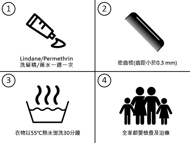 1. 我會開專門殺蟲的藥(Lindane),你一週用一次,塗在毛髮及皮膚上,四分鐘後洗掉。