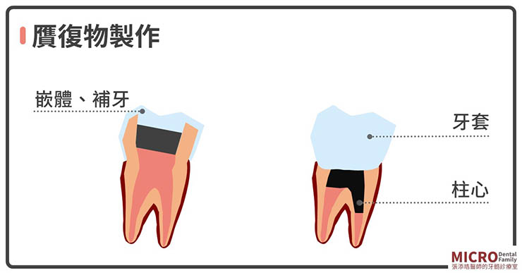 若遇到缺損範圍過大的牙齒,則超過填補材料的極限。所以,應該選擇哪類型的贋復物〈牙套、嵌體、補牙〉,請遵照醫師的建議,而不是一昧的只是想補起來就好;卻忽略您生病的牙齒是否適合恰當的贋復物。