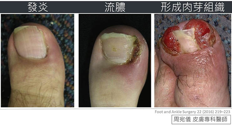 「醫生,拜託救救我,我的腳痛到快不能去上班了!」一位時髦的妙齡女子穿著拖鞋侷促不安地走入診間,一坐下來就這麼說。請她把腳放在腳凳上,定睛一瞧,雙腳大腳趾的趾甲已經捲進甲肉中,右腳更有明顯的紅腫發炎。
