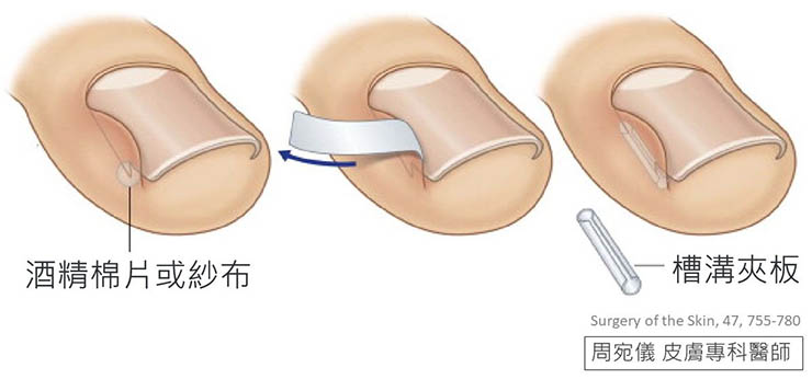 所幸近來有了指甲矯正器,讓患者有更多樣的選擇,除了能快速減輕疼痛之外,也可以免除拔甲的酷刑及其衍生如指甲變形或甲床角化使指甲長不出來等的後遺症。