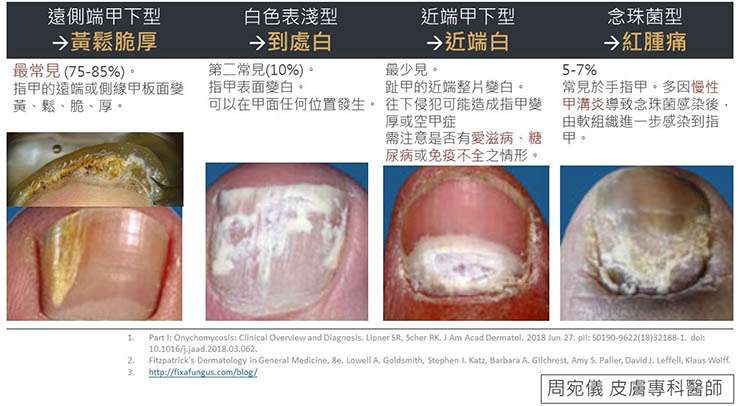 臨床上,灰指甲表現可以分為四大類: