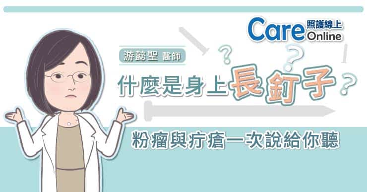 這當然不是真的身上長了釘子,而是這種痛感,就像一根釘子釘在皮膚上一樣難受,而造成這種現象的原因,不外乎兩種病因:粉瘤或是疔瘡。