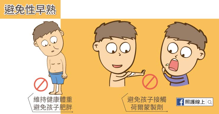 面對性早熟,家長還有幾件需要知道的事情。一個是女孩原本就比男孩更早會進入青春期,同樣也比較容易性早熟。在這過程中,我們要記得幫孩子注意體重控制,保持適當體重。否則體重過重的女孩子比較容易會有性早熟的狀況。另外,假如經常接觸含有女性荷爾蒙或男性荷爾蒙的乳液乳霜,或接觸到含女性荷爾蒙的藥物(誤吃家人的避孕藥之類的),也會讓孩子青春期提早到來。因此要幫助小孩遠離家人正在使用的荷爾蒙製劑。