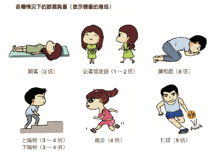 舉凡任何膝部問題,最簡單的要點就是不要蹲、不要跪,長時間蹲、跪對膝蓋的傷害遠大於慢跑、下樓梯、深蹲、硬舉等各種運動。特別是長輩,常有長時間拜拜的習慣,宜改變(雙手合十鞠躬即可,以免久拜傷膝蓋)。