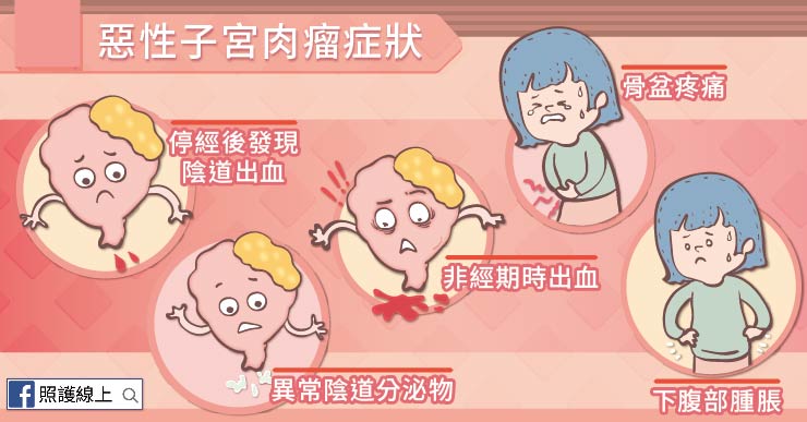 罹患惡性子宮肉瘤時,患者可能會表現以下症狀: