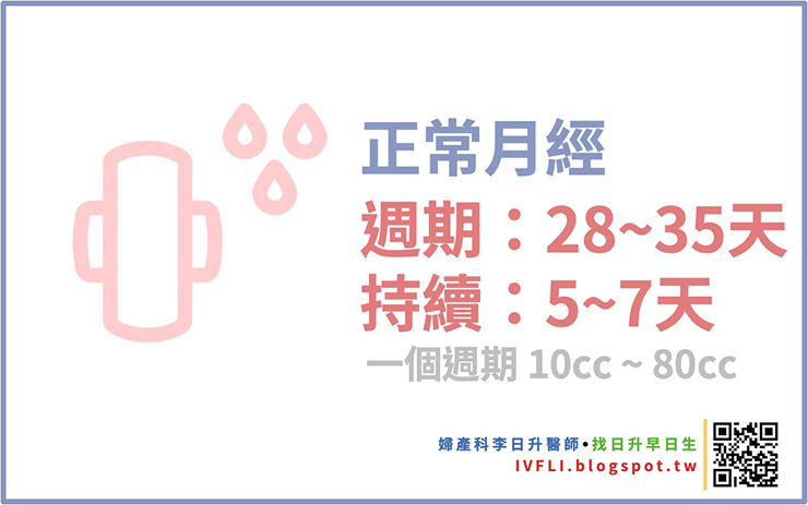「規則月經」就是每 28 天到 35 天來一次,月經出血時間維持 3 到 5 天,總出血量大約 10 c.c. 到 80 c.c.。