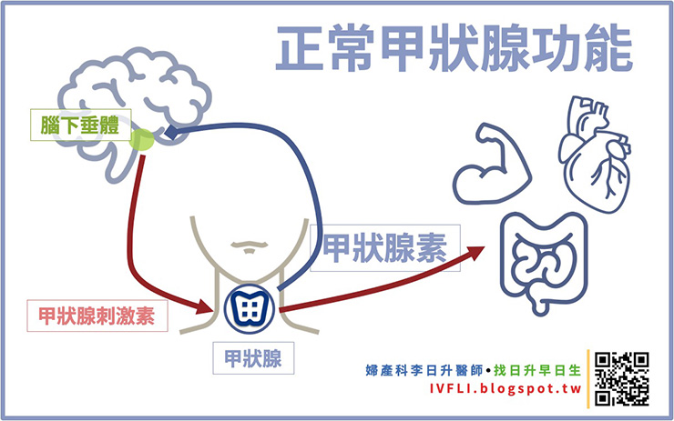 然而,甲狀腺刺激素( TSH )跟濾泡刺激素( FSH )、黃體生成素( LH )的化學結構非常類似,所以升高的甲狀腺刺激素( TSH )會干擾小濾泡的成長,因此不會排卵、月經就不規則。
