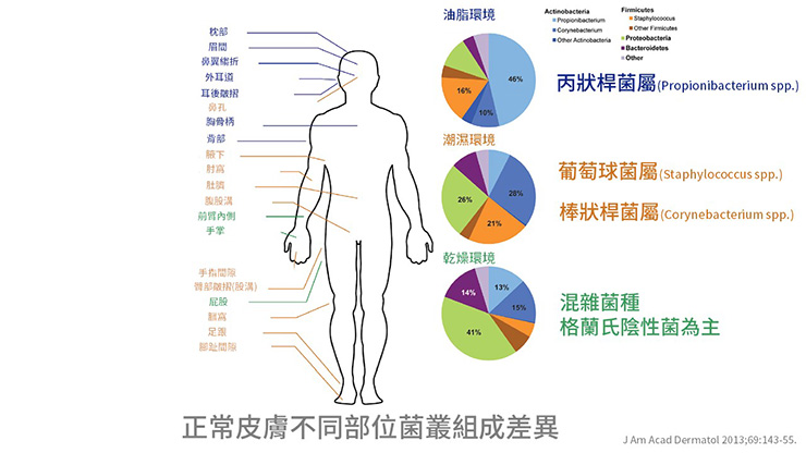以上綜合來看,皮膚生理環境,基因和接觸環境皆對菌叢組成有影響。