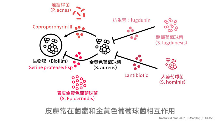 同時皮膚不同菌種會相互作用,可以協同互益,也相互結抗。