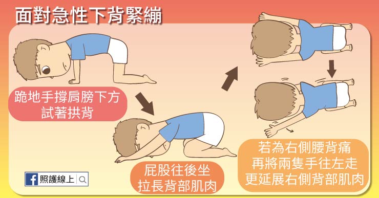 如果你突然間覺得下背緊繃疼痛,你可以試試看: