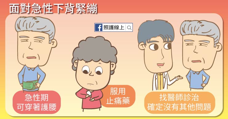 ● 穿著護腰:如果還是需要繼續搬東西,或需要反覆彎腰,可以諮詢醫師意見,看看是否圍個束腹帶會有幫忙,但護腰僅適合用在急性期,如果穿戴太久,核心肌群會愈沒有力量,支撐性更差,更容易受傷
