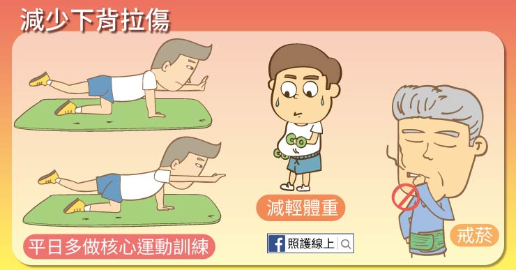 減少一些體重,那我們脊椎和下背肌肉的原始負擔就變少了,如果你常有背痛問題且體重過重,減重就是必須的。