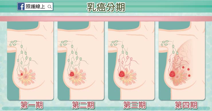 乳癌第一期:乳房腫瘤小於兩公分,而且淋巴結侵犯小於兩公厘。
