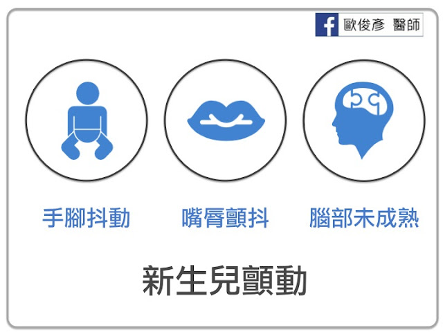 和「新生兒抽筋」不同,只要用手扶住寶寶顫抖中的手腳,此時手腳會立即停止、不會再抖動。「新生兒顫動」是因為和腦部成熟不夠、不能正常控制四肢有關係。80~90%會在寶寶3~4個月大時會完全消失,成長後不會有神經發育遲緩問題、和往後是否會發展成癲癇沒有關係。