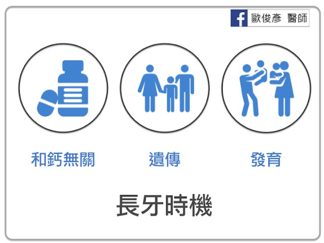 和父母親常常問的「要不要補充鈣質?」沒有關係。雖然大家都知道鈣質是骨骼發展的因素,但目前並無證據表示幫兒童添加鈣可以加速發牙。