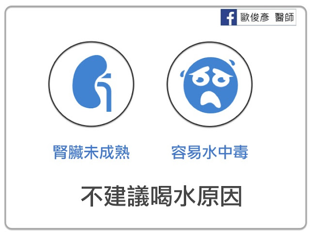 寶寶的腎臟雖然一出生功能就存在,只是此時排泄尿毒的功能大約是成人的五分之一到四分之一,隨著寶寶漸漸長大,直到一歲後腎臟的功能才會趨近成人,所以六個月以下的寶寶不需要另外補充水分,就是怕補充過多水分,引發「水中毒」。