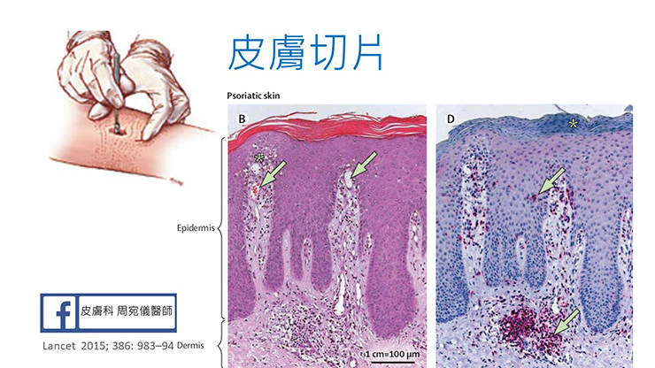 當臨床上真的還是很難確定時,皮膚科醫師的終極祕密武器就是做個皮膚切片,看看到底是乾癬還是其他疾病。