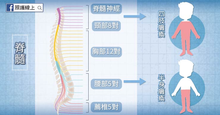 我們平常若講到「四肢癱瘓」(Tetraplegia),代表手臂、軀幹、腳均無法活動,頸椎受傷可能會導致四肢癱瘓。