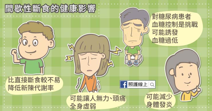 然而這對糖尿病患者並不是個減重的好選項,甚至可能是個危險、致命的選項。雖然有的學者認為間歇性斷食可以改善血糖控制,然而在這斷食的過程中,對血糖控制、血糖用藥都是個挑戰,患者「血糖過低」的狀況變得很頻繁,搞不好就會留下永久性的傷害。