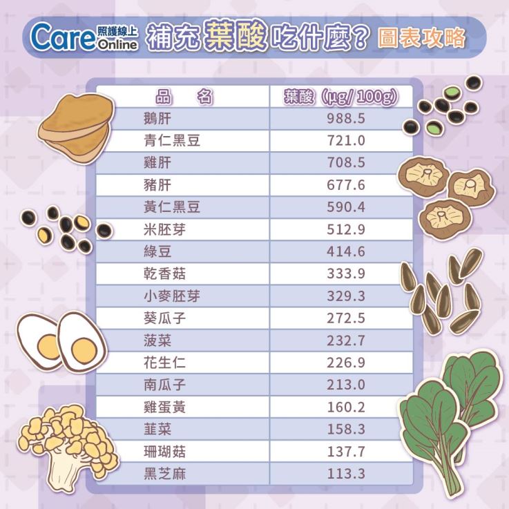 而孕婦很需要注意的營養素 – 葉酸,對胎兒神經發育好重要,你可以在以下的天然食物中攝取到葉酸。