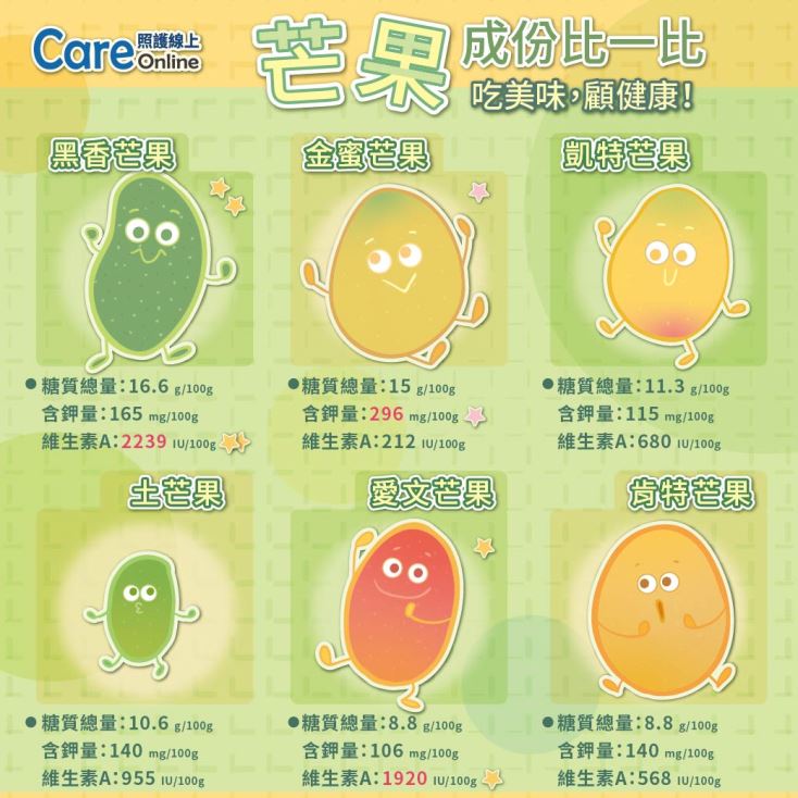 台灣是水果王國,市面上光是芒果就有愛文、玉文、黑香、凱特、金煌、土芒果等多種選擇,它們之間的營養成分也有些許差別呢!