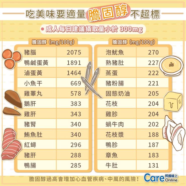 大家耳熟能詳的三高,是指高血壓、高血糖、高血脂。健康檢查中,看到「膽固醇過高」是家常便飯。這時醫師會跟你說,要飲食控制,究竟哪些美味食品的膽固醇比較高呢?