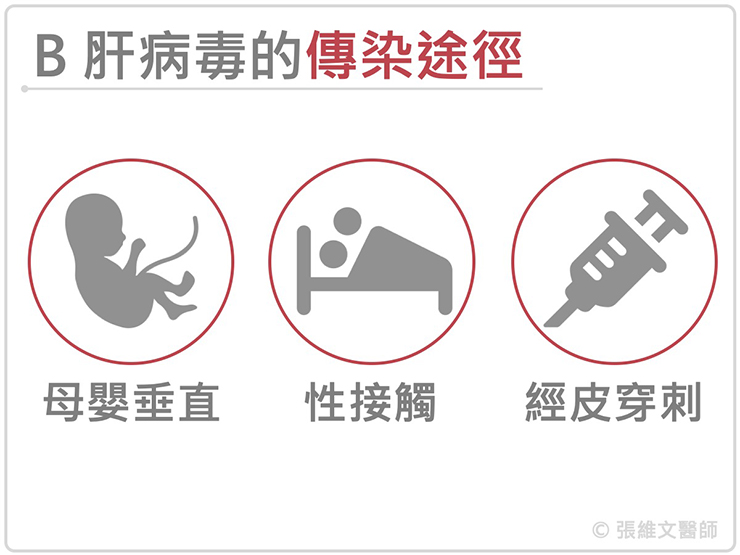 B 型肝炎病毒是透過血液或體液來傳染的,傳染途徑有三: