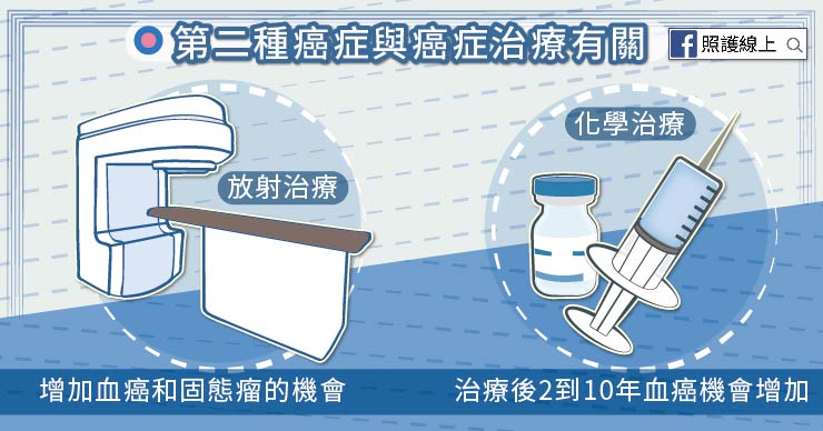 除了血液型癌症外,放射治療也會導致實質固態瘤的產生,但時間上會比較晚發生,可能距離之前的放射治療已經超過十年,甚至十五年以上了!