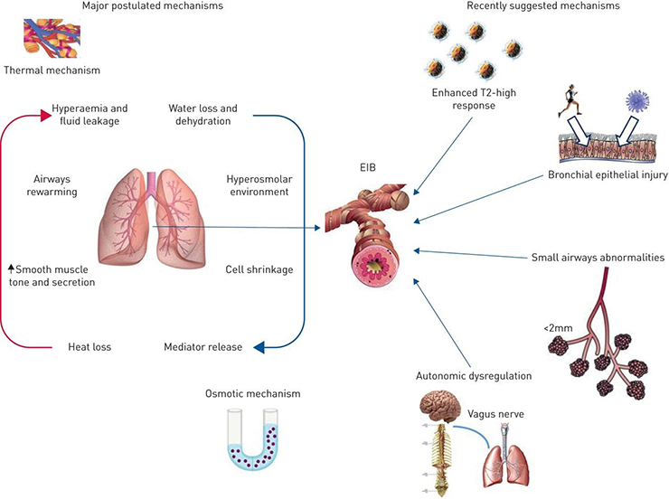 目前尚未確定造成的機轉,有研究提出因為運動刺激通氣量增加,造成氣道脫水、滲透壓增加的理論,導致一些發炎物質被釋放,造成支氣管收縮,這樣的情況也可能與氣道重塑有關。