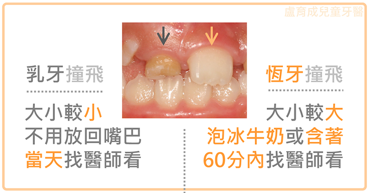 如果是乳牙,可以不用泡牛奶或含著,把牙齒帶著去找牙醫、當天檢查傷口狀況即可。