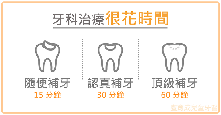 因為牙科治療也要花許多時間。補牙有些人可以 15 分鐘一顆,也有人 30 分鐘一顆,甚至有些醫師補完會讓人完全看不出有補過,但時間會花到 60 分鐘一顆。「 快 – 好 – 便宜 」的不可同時追求是每個醫師跟病人都在抉擇的問題。