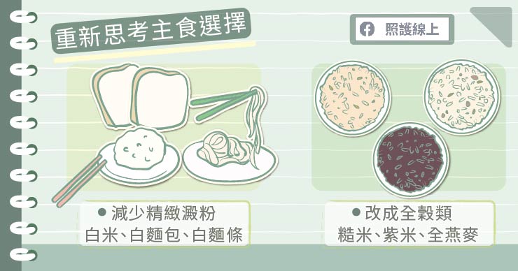 當然,這並不是叫大家都不要吃飯吃麵吃麵包了,但在選擇上,真的可以做一些調整。例如你可以選擇糙米,而不是白米。糙米是全穀類,帶有胚芽、胚乳、和麩皮,這些是我們體內維生素和礦物質的重要來源,這就是我們該選的主食!除了糙米之外,紫米、全燕麥、糙薏仁也都是好的全穀類來源。記得,不要吃太多白米、白麵包、白麵條等精緻澱粉類型的主食,而是要改吃全穀類的主食。你可以戒糖,但不要完全戒醣,還是要攝取全穀類的碳水化合物,只是要少一點精緻澱粉。