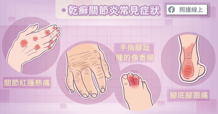 高雄醫學大學附設醫院皮膚科林聖堯醫師指出,近年來發現,乾癬罹患關節炎的患者其實不在少數,雖然乾癬患者不一定會併發乾癬性關節炎,但是一旦罹病,關節炎會持續進展,若未及早發現治療,恐造成骨頭、關節造成持續且不可逆的傷害。醫師提醒,如出現指甲病徵、早上起床下背痛、關節疼痛等皆是乾癬性關節炎的疑似病癥,建議應諮詢專科醫師著手進一步檢查,以評估其乾癬性關節炎風險。