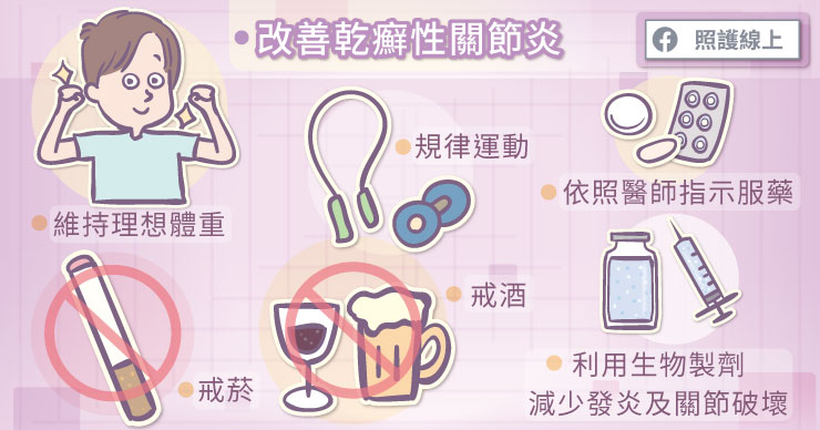 皮膚乾癬跟乾癬性關節炎可同時治療,通常患者會主動就醫是希望將皮膚乾癬治療好,因乾癬範圍太大會影響外觀讓患者自信心受損。民眾平時可多注意早上起床會不會下背痛,有沒有其他關節會疼痛等,若懷疑是乾癬性關節炎,應盡快就診治療。