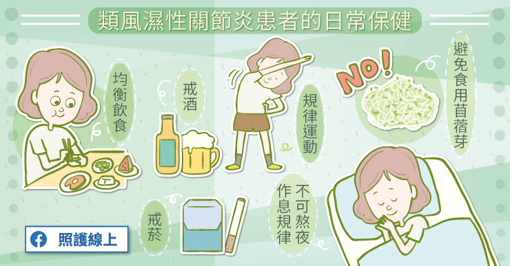 類風濕性關節不是不治之症,是一種慢性病,患者應與疾病和平共處。隨著醫療進步,類風濕性關節炎有許多藥物可以好好控制發炎,避免關節破壞變形,使患者能維持良好生活品質。