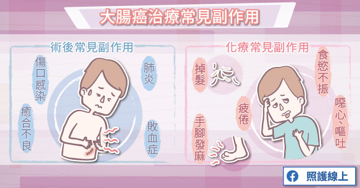 大腸癌手術是切除一段腸道與鄰近的血管淋巴等構造,然後將斷端接起來。常見的併發症包括出血、吻合處癒合不良、傷口、肺部感染或敗血症等,而這些都跟患者營養體力狀態有直接相關聯。