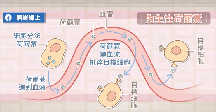 其實會有這些內生性的荷爾蒙,是我們身體內各個器官之間需要互相溝通,所以就要靠著這些於血液中有些跑來跑去的化學物質,稱為荷爾蒙(hormone),來負責傳遞器官間的訊息。像是甲狀腺分泌的甲狀腺素,就是一種荷爾蒙,甲狀腺素就能去到心臟、肌肉、腸胃等處,影響各個器官的運作。卵巢會分泌女性荷爾蒙,像是雌激素和黃體激素,影響子宮、乳房等處。