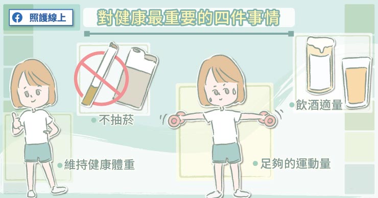 研究結果認為,如果擁有這四個健康生活習慣,比上生活習慣最糟的那群人(BMI大於30,抽菸,不運動,喝太多酒),能多活近十年不受慢性病糾纏的日子。